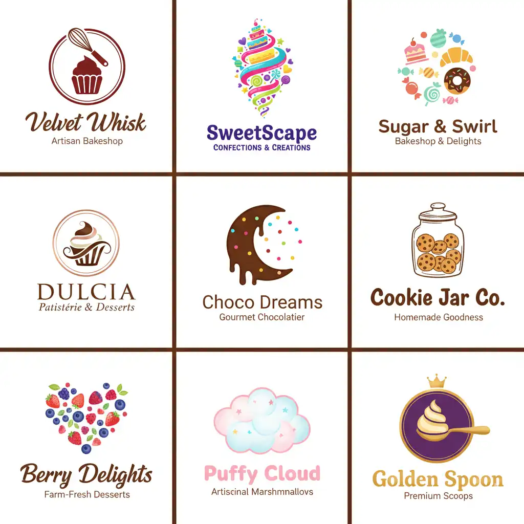 اعتمد على أفكار مبتكرة لتصميم شعارات حلويات تميز مشروعك عن المنافسين وتجعله علامة تجارية قوية ولافتة للانتباه.